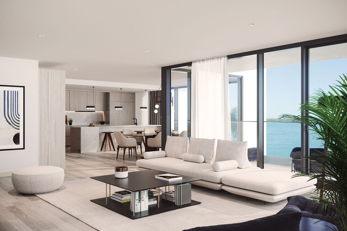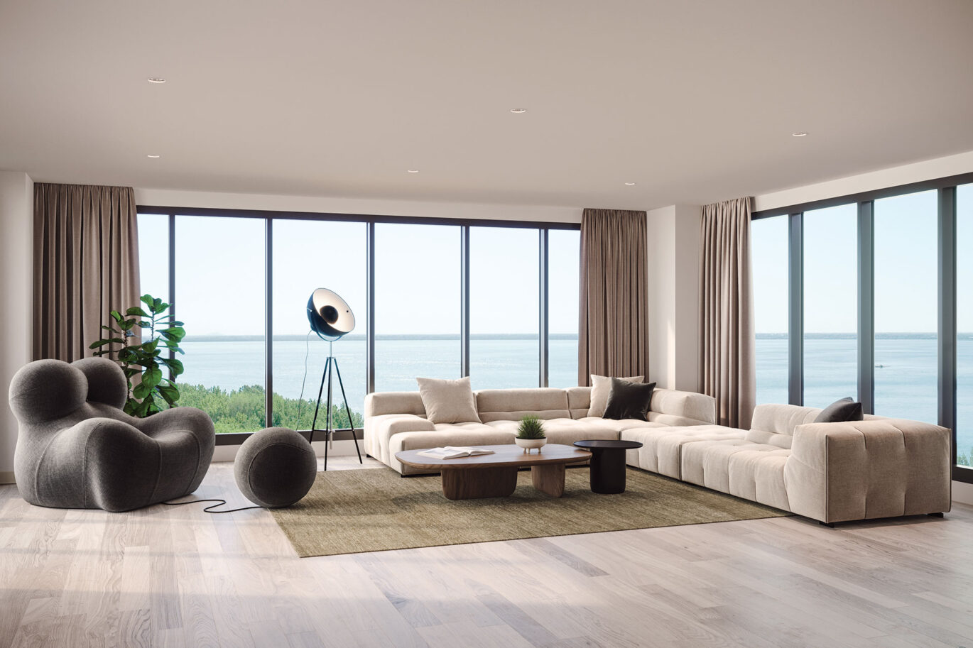 Une fenestration pleine hauteur, spectaculaire, des plafonds élevés; dans la cuisine, des appareils allemands, de la céramique et des comptoirs européens; des rangements intégrés; et plus encore…